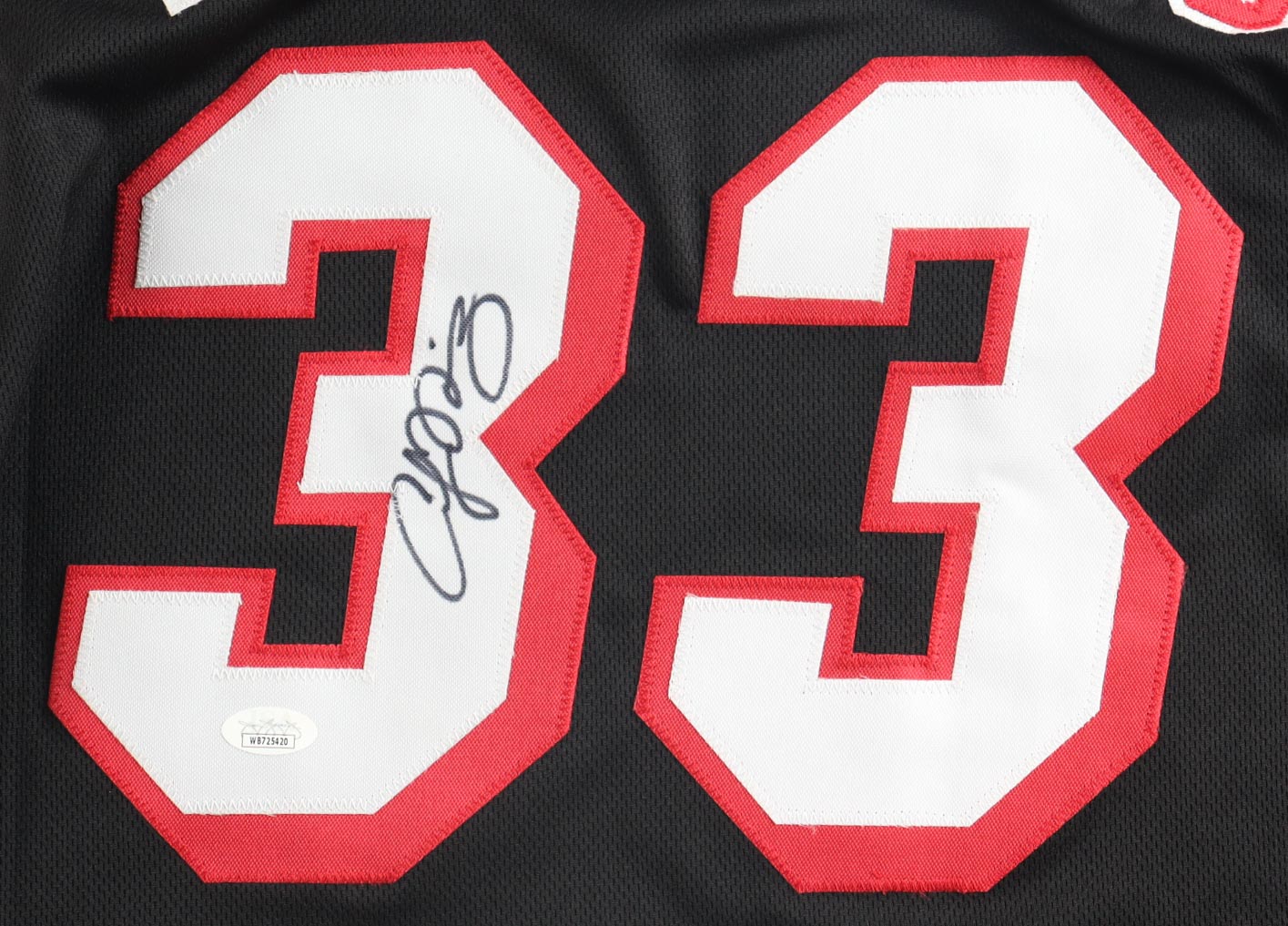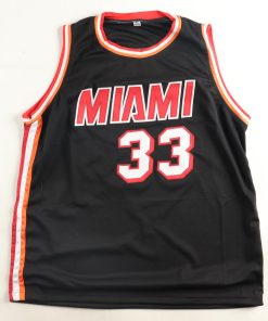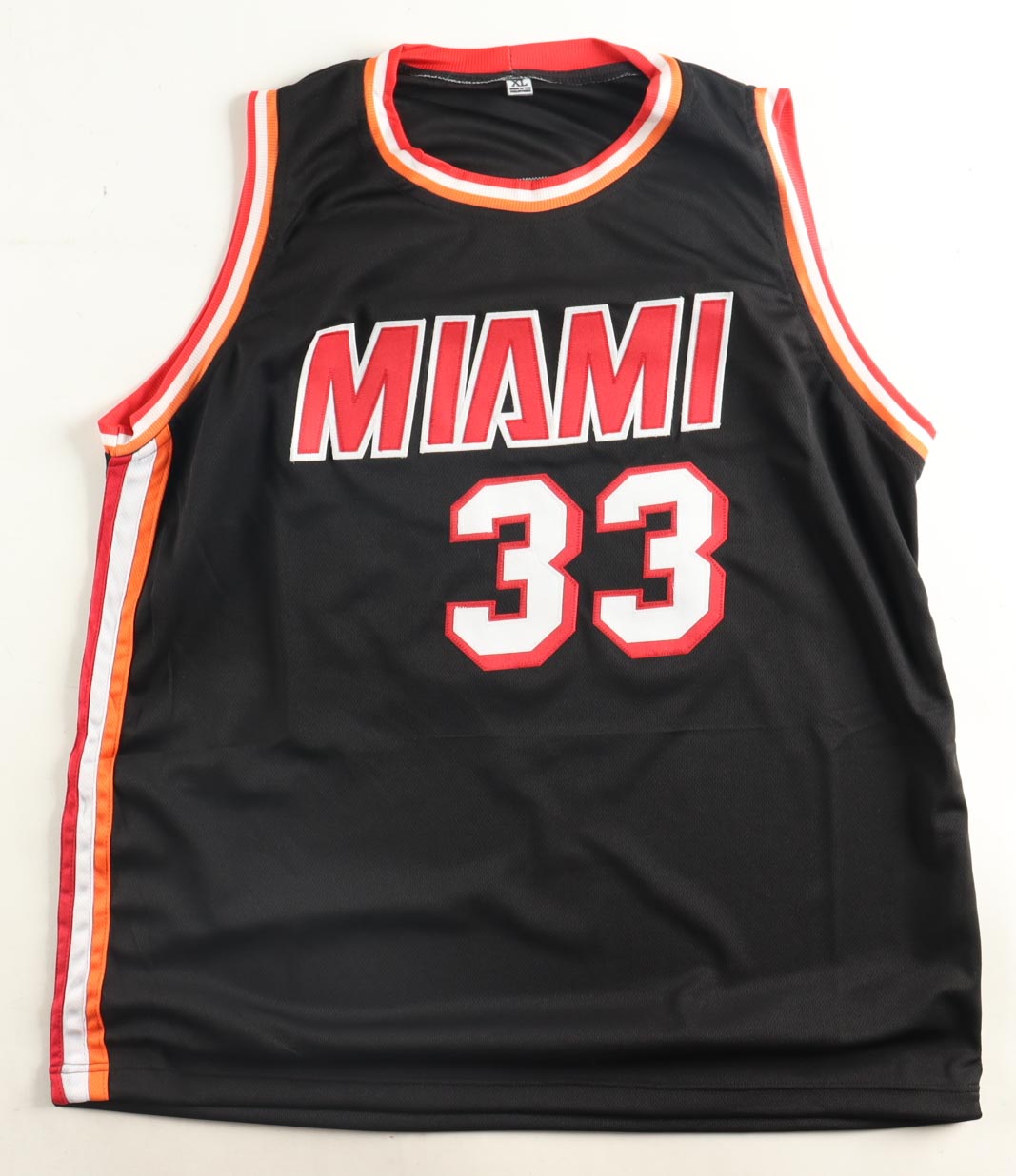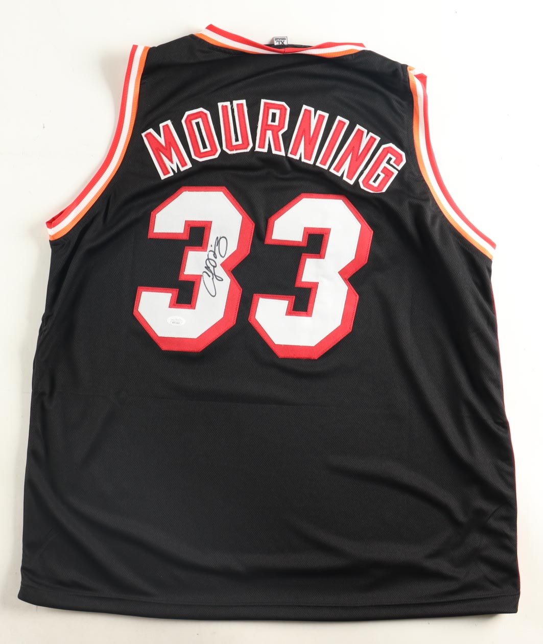 Custom jersey with everything sewn on, size XL. Hand-signed by Alonzo Mourning